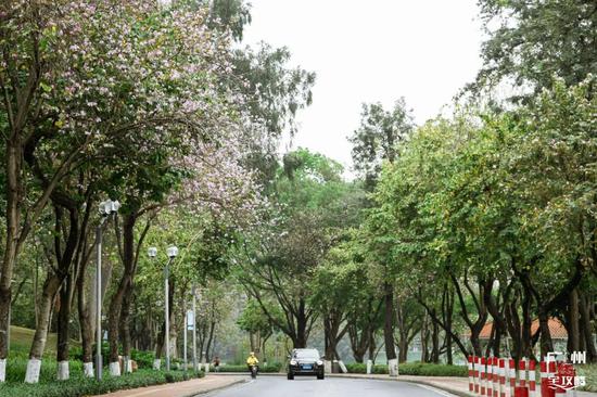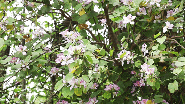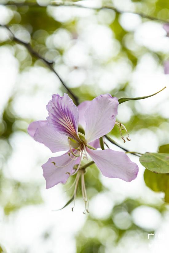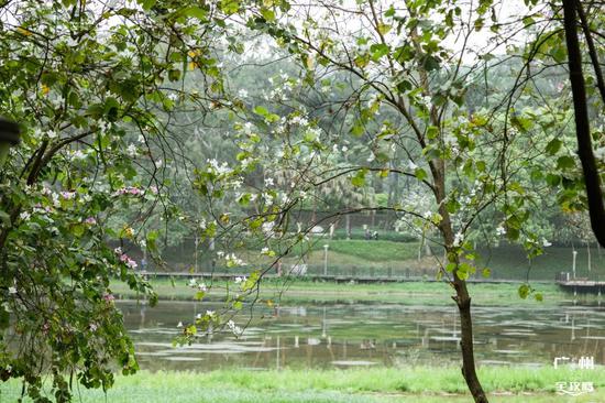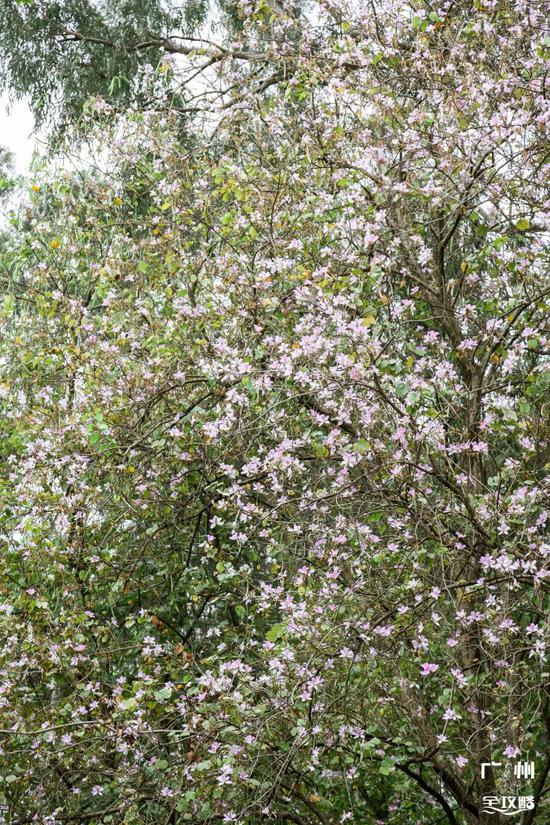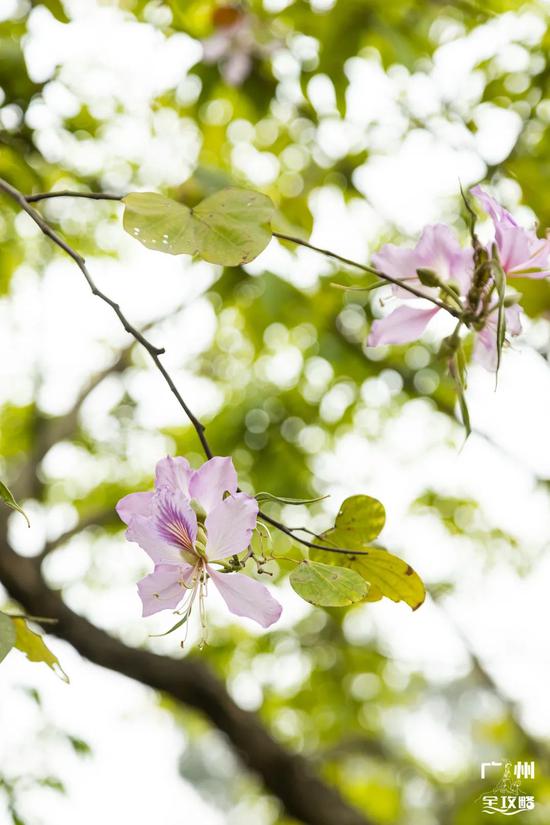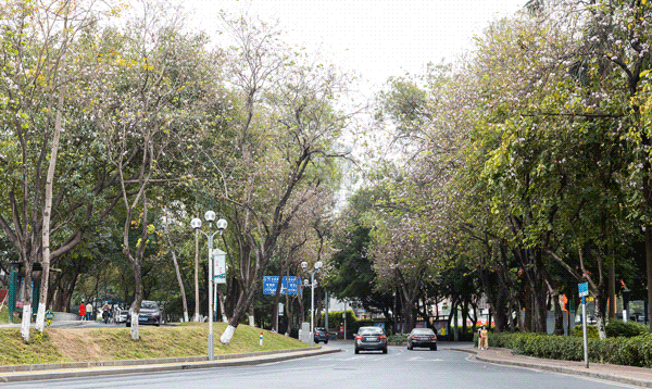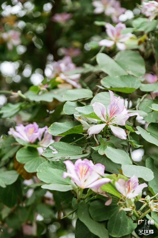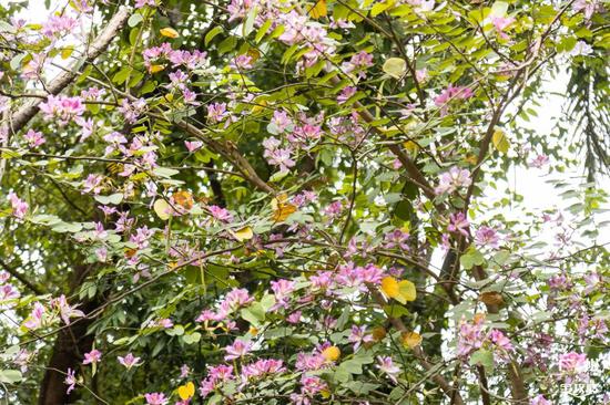 麓湖路两旁的紫荆花开得最盛,一眼望去,粉白相间,清新淡雅,浪漫极了。