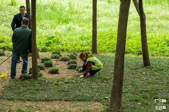 还有认真专注的大爷,这大炮一看就是专业的,忍不住偷拍一张哈哈,当然满园翠绿盎然的美景里,也包含了辛勤劳作的工作人员,认真做事的人都是最美的。