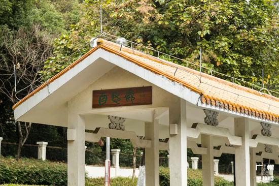 麓湖低调到什么程度呢?连个大门都没有,只有一块“麓湖碑”。该碑是为纪念一九五八年全市义务劳动湖筑坝修建麓湖而树立。