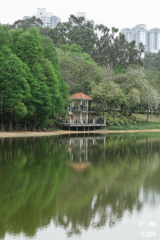 麓湖位于白云山下,被茂林环绕的湖畔,隐隐有西湖和岳阳楼的神韵。