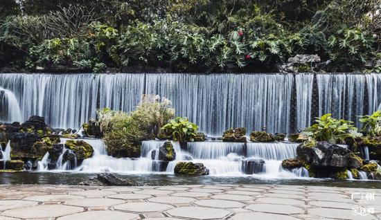 还未走进麓湖公园就听到水流直下的哗哗水声,才发现这闹市中还藏着一个小众瀑布——东濠涌,怪石嶙峋,水与水拍打着,迎面而来一股清凉的水汽拂面,久违了,这被自然唤醒的感觉。