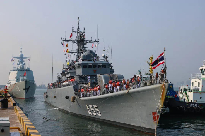 根据年度训练计划和中泰双方共识,中国和泰国将于3月下旬至4月上旬位湛江海空域举行中泰“蓝色突击—2025”海军联合训练。25日上午,泰方联训兵力抵达湛江某军港,中方在码头举行热烈欢迎仪式。