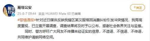 ·西安警方通报“汉服馆消费纠纷”:已立案开展调查。