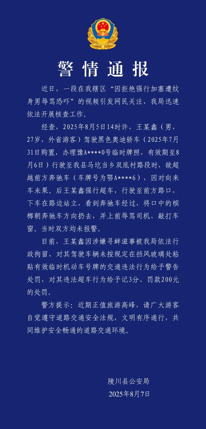 ·山西警方通报:一男子强行加塞未果辱骂对方,涉嫌寻衅滋事被行拘。
