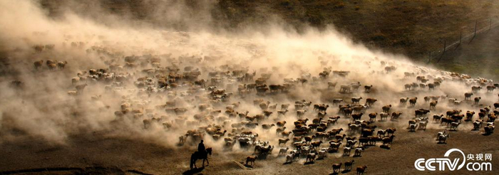 新疆阿勒泰:牧民赶牲畜前往冬牧场,连绵队伍犹如动态“游牧图”。