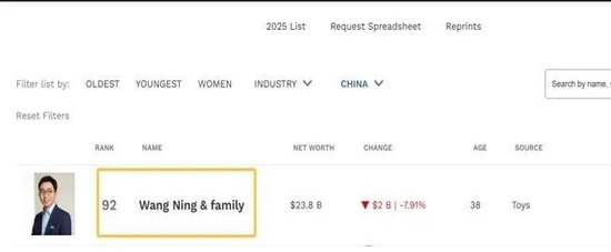 从2025年这些新晋首富的年龄来看,最小的是王宁(38岁),其次是陈天石(40岁)。范代娣今年59岁,朱义今年61岁。