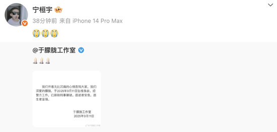 我们怀着无比沉痛的心情告知大家,我们深爱的朦胧,于2025年9月11日坠楼身故。经警方工作,已排除刑事嫌疑。愿逝者安息,愿生者坚强。