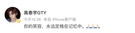 高泰宇,曾与于朦胧合作电影《为爱放手》则发文:“你的笑容,永远定格在记忆中”。