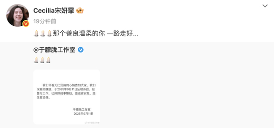宋妍霏:“那个善良温柔的你,一路走好……”