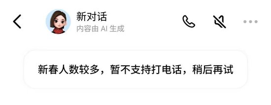 2月16日,第一财经记者发现,豆包 APP 目前暂停了视频通话功能,页面显示“新春人数较多,暂不支持此功能”,或因算力压力所致。今日除夕,豆包将通过总台春晚进行红包互动。截至发稿,字节跳动方面暂未回应。