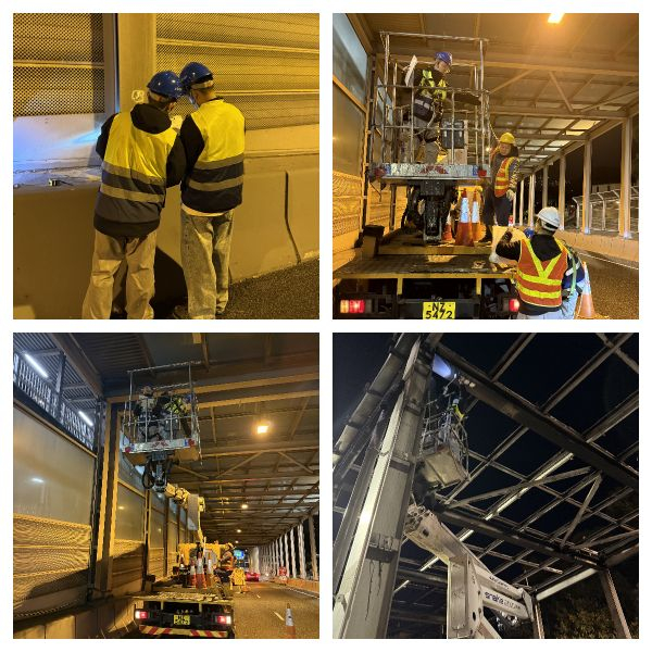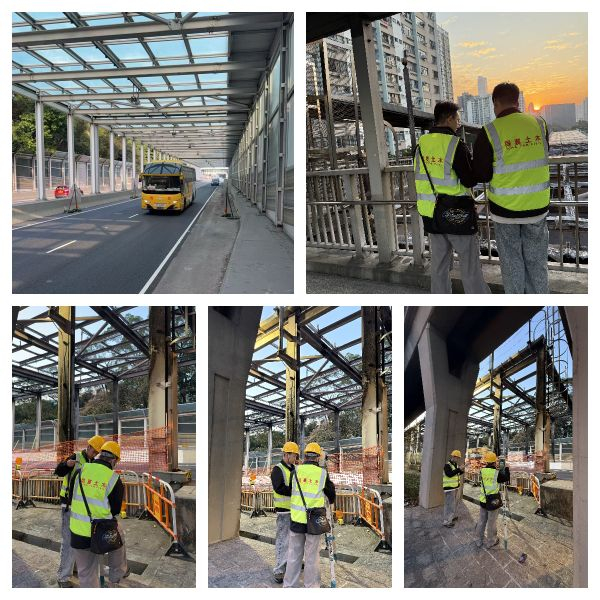 根据香港当地路政署的要求,在不影响交通的情况下部分检测工作只能在半夜进行,同宴土木工程师严正以待。