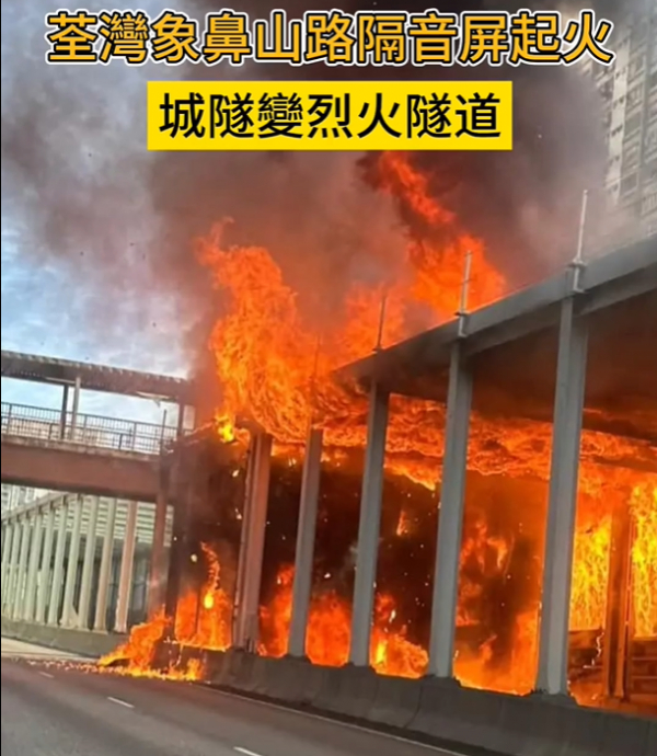 本项目位于香港荃湾象鼻山路往荃湾方向近石围角邨一处隔音屏,(27日)上午约11时起火焚烧,现场浓烟滚滚,席卷半空,驾驶者见状不敢贸然开车前进。