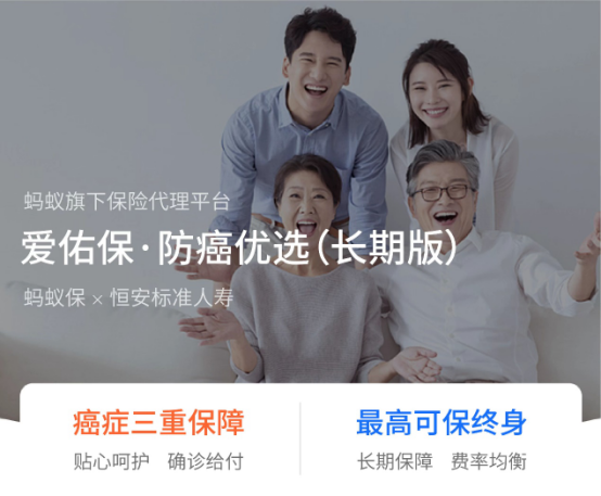 本次在蚂蚁保上线的“爱佑保•防癌优选(长期版)”,是恒安标准人寿顺应养老新趋势,结合自身积累的中老年防癌产品优势而推出的全新互联网保险产品。该产品开发负责人表示,依托互联网保险的独特优势解决中老年群体需求非常符合社会公众的期待。公司非常重视和蚂蚁保平台的首次合作,在中老年防癌这一传统优势产品的基础上,充分结合互联网特点,对产品进行了调整升级,希望通过蚂蚁保平台的影响力,让更多有需要的人获得保险保障。