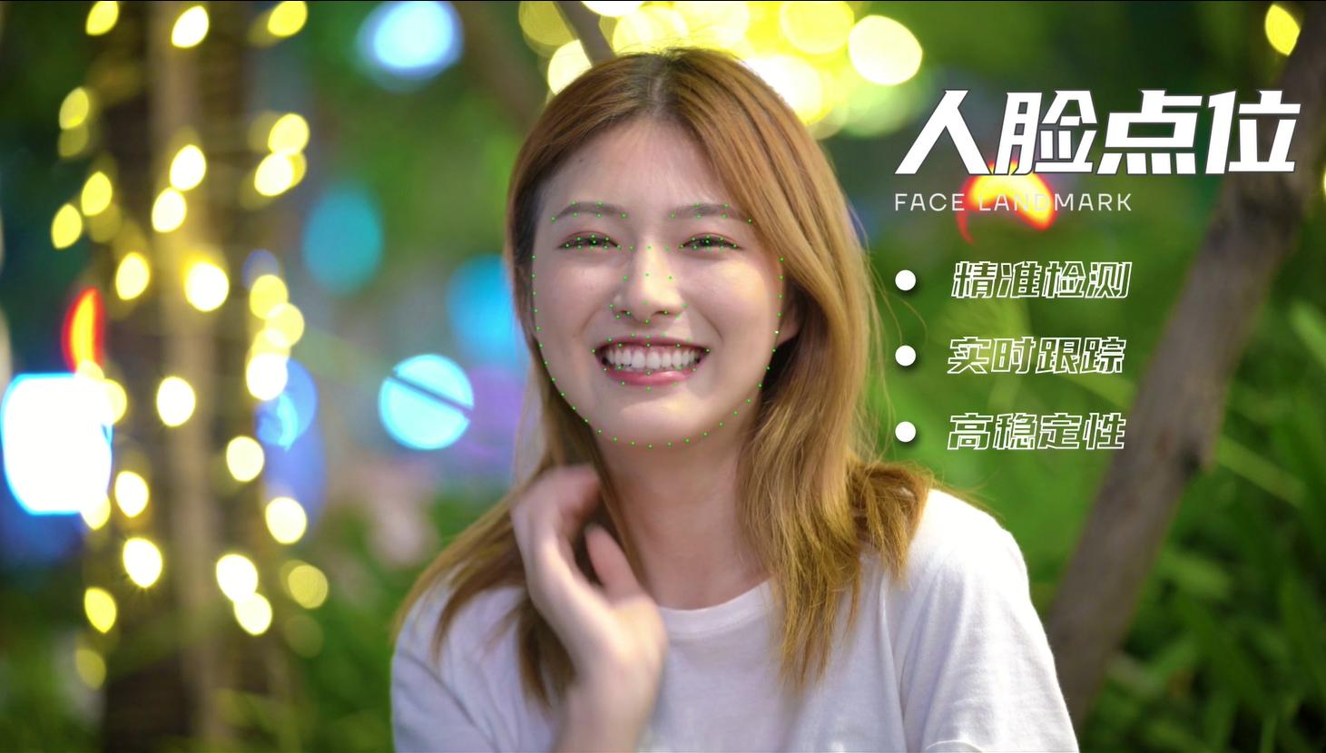 而在人脸关键点算法上,优化了点位稳定性,提升了不同光线情况下美型模块稳定效果,实现精准检测、实时跟踪、让你无论置身何种场景,只要打开视频特效就可以美美哒。