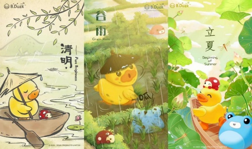 作为中国原创IP品牌,B.Duck早已将这份独属中国的浪漫呈现给大众,推出了24节气的插画壁纸,将B.Duck与24节气特点相结合,赋予插画生机,突出了品牌形象,从趣味性十足的插画壁纸中感受中国式浪漫。B.Duck顺应时代发展,在国潮风兴起的时期紧抓热点,将B.Duck这一IP形象与国风牢牢贴合,不断推出带有国风符号的产品,也将这一风格融入到壁纸插画中,带给年轻消费者耳目一新的感觉,也让他们感受中国传统文化的无穷魅力。除此之外,B.Duck还积极宣传中国传统佳节,在每一个佳节节点推出相关气息主题的海报、壁纸头像等,将中国传统文化带给全世界,以强大且富有吸引力的设计主题和风格走进Z世代年轻人的心里,为他们表达出自我的态度和追求。