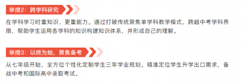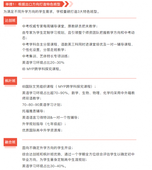 为保证“双出口”理念的落实,学校精心设计3大举措,让孩子不管是选择国内升学还是国外留学都有坚实的保障。
