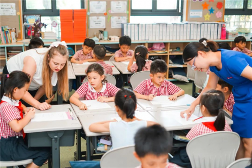 “多”:学校采取26人小班制教学,小学部师生比1:7,初中部师生比1:5。除此之外,学校实行双班主任制,每个班级配备主、副两位班主任,班主任办公地点就位于教室后方,便于班主任了解每位学生的动态。