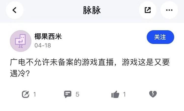 不过,仍有不少职场人相信,停摆并非是游戏直播行业的未来常态。以游戏版号时隔8个月重启为契机,游戏圈呈现重建信心之势。认证为竞技世界工作室运营负责人的脉友表示“国内游戏版号开始解禁,游戏圈第二春要来了!”