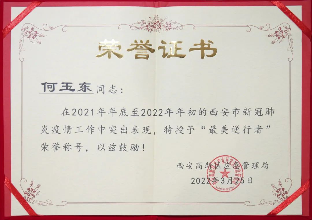 近日,优露清收到一件特殊的快递——西安高新应急管理局为优露清控股集团董事长何玉东颁发的“最美逆行者”荣誉证书。这一切,都要从几个月前说起。