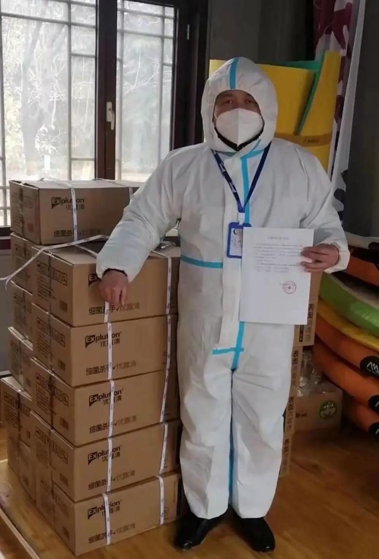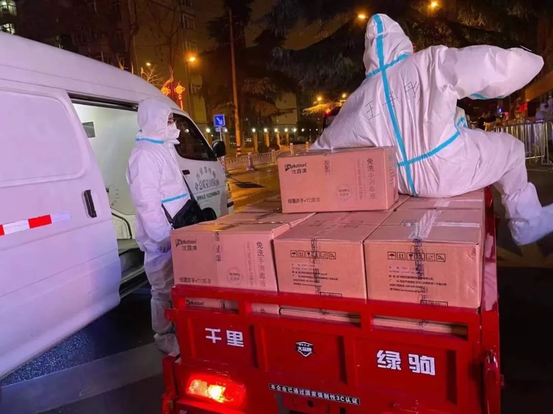12月27日疫情防控升级,西安市启动社会面管控措施,要求全市党政机关、企事业单位和市民要做到非疫情防控及民生保障车辆不得上路。在通行极为艰难的情况下优露清仍不断协调办理通行证件,为西安市高新特种应急救援中心送去1400余瓶表面消毒液,为抗疫英雄们的安全保驾护航。