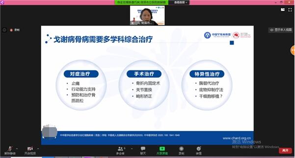 董教授介绍到戈谢病患者的致病基因,导致溶酶体里的葡萄糖脑苷脂酶活性减少或缺乏,无法正常分解葡萄糖脑苷脂,这些大分子在患者体内沉积下来,引发各种病变。最明显的是骨骼畸形,导致患者血液、器官、骨骼受累,并发生进行性恶化,儿科、血液科多见。而且症状涉及多个系统,且多无特异性,极易误诊漏诊。而骨病患者治疗的目标是为了预防损伤,缓解骨痛,恢复功能。