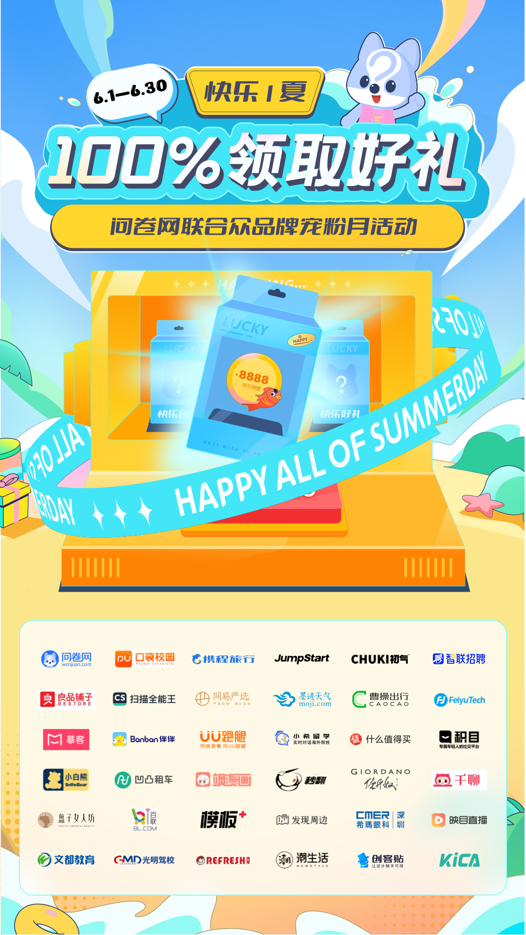 用IP聚合年轻人已经成为互联网品牌出圈的新思路,6月1日,国内知名调研平台问卷网再次启动年度超级品牌IP月,其一手主办的“快乐1夏”大型品牌活动盛大开幕,面向全网征稿快乐小事,准备掀起一个月的宠粉福利潮!