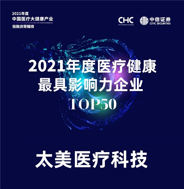 5月26日,由CHC医疗咨询携手中信证券联合评选的「2021年度中国医疗大健康产业投融资荣耀榜」正式发布。作为国内领先的基于云计算和大数据技术的生命科学产业数字化解决方案提供商,太美医疗科技依托其在医药研发SaaS领域的技术创新与不断深耕,入选“2021年度医疗健康最具影响力企业TOP 50”。