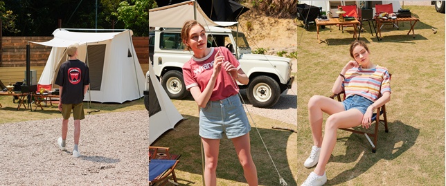「焕彩趣夏」系列T恤单品巧妙结合品牌经典标识与趣意印花图案,兼具时尚创意与不羁态度。浓郁美式复古风Ringer Tee的色调变化充满元气与活力。与清新短裤单品随性相搭,明快演绎夏日活力。