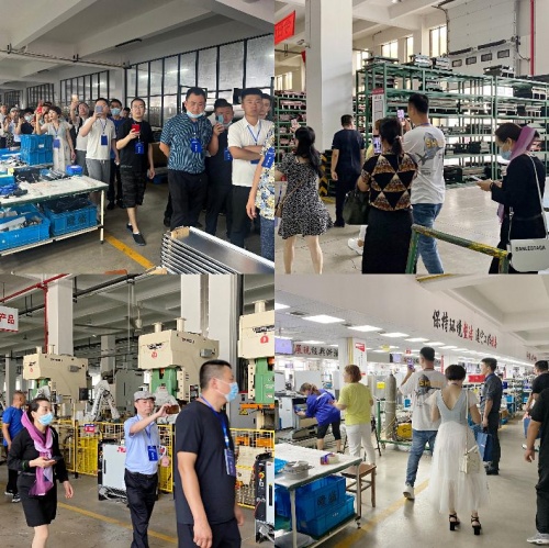 浙派工作人员带领大家分别走进板金车间、组装车间和打包车间。实地考察浙派电器的精密流水线作业。