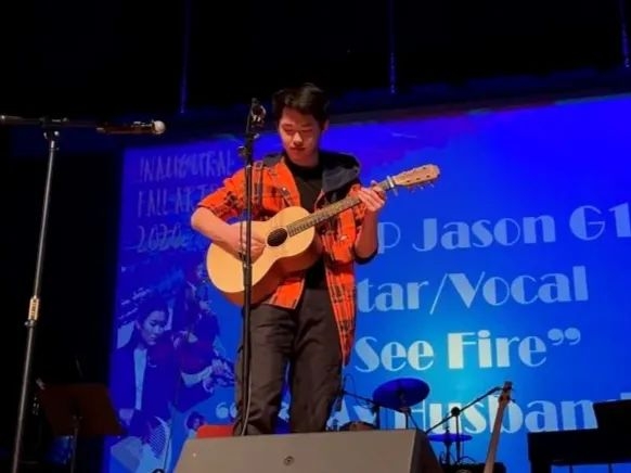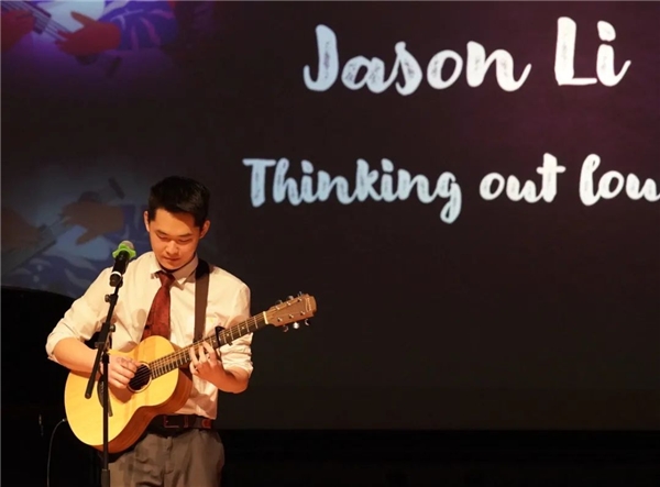 直到9年级的时候,有一次听见一个歌手Ed Sheeran一边弹吉他一边唱歌,Jason被深深地打动,于是开始去学弹吉他,一下子就爱上吉他弹唱,每天都要弹,不弹就手痒,出去玩也要带着。