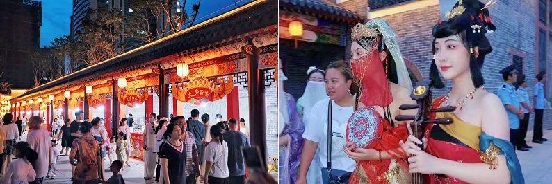 据悉,景区开业后免费开放,开业活动也将持续至7月10日。在此期间,游客能沉浸式体验“梦回庐陵夜游”、观看如梦似幻的“梦幻光影秀”、与亲朋好友身穿汉服逛“汉风游园会”、在“美食市集游”中品尝狗牯脑冰淇淋、手工水果冰粉、乐山炸串、狼牙土豆等特色美食、畅玩投壶、套圈、射击气球等“趣味游戏体验”。更有异彩纷呈的“特色戏曲表演”、“非遗手工展示”、“文创产品展示”等主题活动,让人目不暇接。开业当日,景区人气爆棚,现场热闹非凡,众多市民游客纷纷前来打卡游玩。伴着习习凉风,美丽的后河河畔人气聚起来、夜晚亮起来、夜间消费火起来。