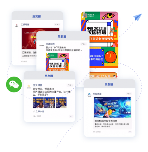 不仅如此,企业还可以依托腾讯的亿级流量,通过朋友圈广告主动走入候选人的社交圈,企业可以将招聘信息、宣讲会安排等内容以广告的形式投放在朋友圈的信息流中,并通过设置年龄、位置、学历、行为等标签数据精准触达目标人群。
