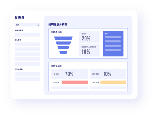 除了提效,系统的价值更在于「在运营的过程中沉淀出宝贵的数据,经过运用和分析,为招聘的决策提供依据」。 数据报表中心除了展现包括「招聘进展追踪」、「渠道效果复盘」、「招聘时效分析」、「投递趋势分析」、「人才特质分析」、「招聘绩效分析」在内的常用招聘数据,还会在数据统计的基础上加入洞察分析,例如,系统可以统计出该HR负责职位的入职转化率,并将其与公司平均水平进行对比,最后基于结果给出优化建议。