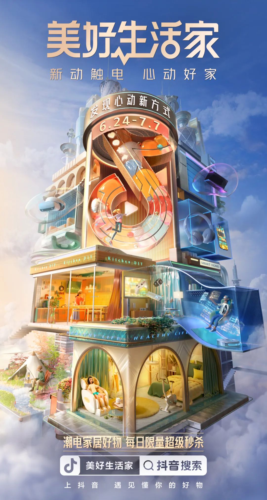 近期,抖音电商消费电子家居生活行业发起「美好生活家」活动,基于平台内容消费洞察,总结出6大家居生活心动新方式: