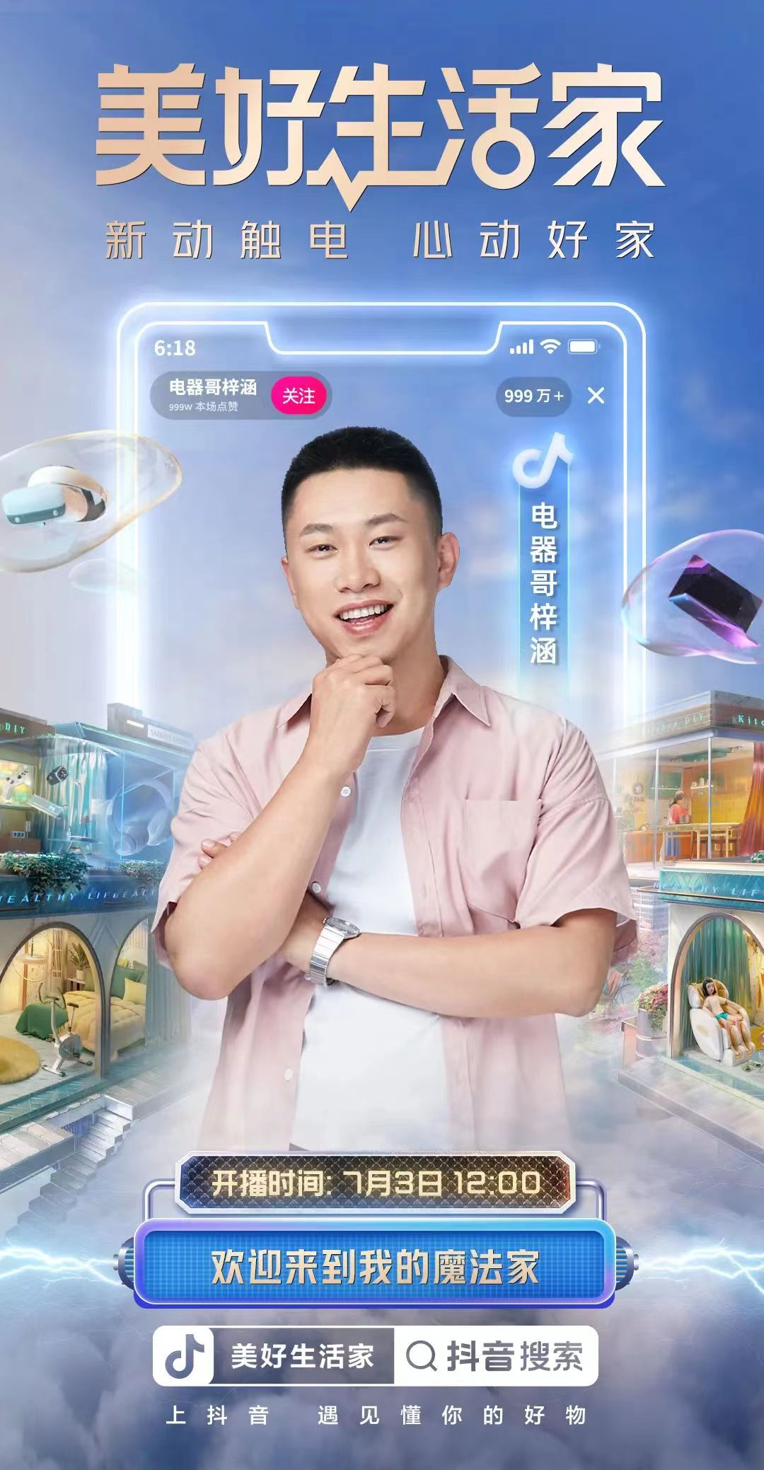 6月24日至7月7日,抖音电商消电家居行业同步发起「美好生活家」活动,以家电领域「新动触电」与家居领域「心动好家」双线并行的方式,用“心动好物”激发兴趣欲与消费欲,满足用户对“美好生活”的核心向往,并通过直播间、打榜赛与话题活动,为商家与品牌提供全域兴趣电商下新的生意增长机会。
