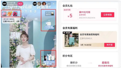 618期间,在直播间、短视频和店铺三个端口,心相印均采用了不同的方式吸引会员。
