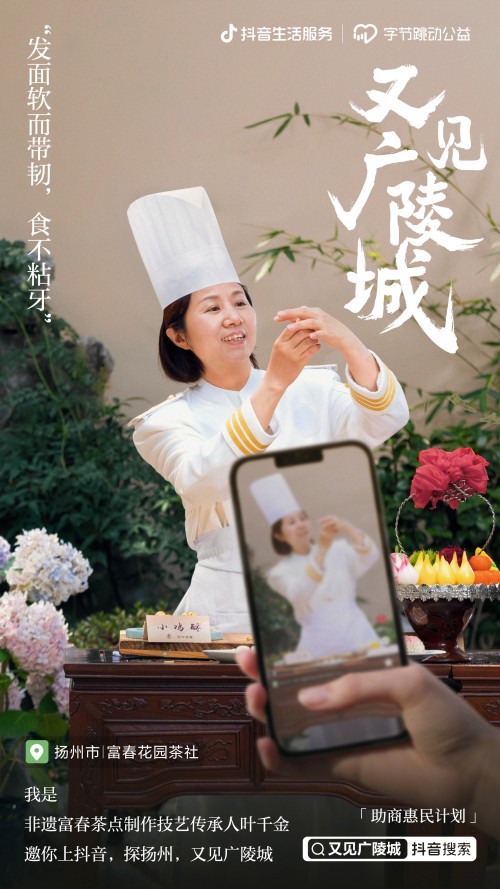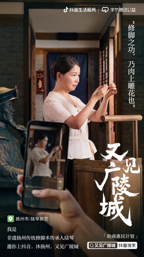 “又见广陵城”项目是抖音生活服务“助商惠民计划”在扬州的落地,联手字节跳动公益,邀请扬州本地非遗传承人,以助力古都美好发展的愿景,传播各地技艺传承,支持非遗商家快速复苏。