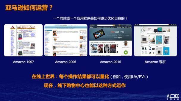 在创立 Aibee 爱笔智能之前,林元庆曾任百度研究院院长,凭借在线上世界的多年经验,他以全球电商巨头亚马逊为例,其每一个时期,网站、APP 上的每一块内容的展示、每一个商品的陈列摆放,都依据 AB Test 来确定,而 AB Test 的抓手正是用户数据。确切地说,是基于用户全流程的基础数据。用户全流程数据是线上世界运营管理的核心抓手。