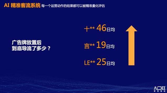 Aibee AI 精准客流系统还能够清晰地统计广告牌摆放后的效果——到底为店铺新增导流多少,过去购物中心运营活动无法做效果评估的问题就迎刃而解了。即使是换掉一些餐饮店铺之后 ,整体导流率是否有提升也可以准确衡量。林元庆强调,“每一个运营动作的结果都可以被精准量化评估,这其实就是过去15-20年互联网运营不断提升的核心工具”。