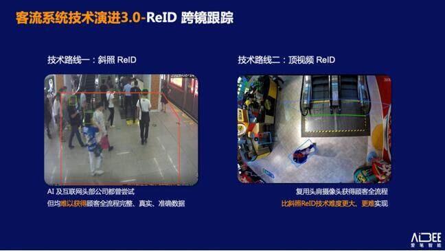 在人脸识别不被允许的情况下,部分公司开始采用 ReID( 行人重识别,Person re-identification)技术,以期基于非人脸 ID 的人体表观特征等实现跨镜识别,即客流系统3.0,其技术路线有二,一是斜照 ReID,二是顶视频 ReID。