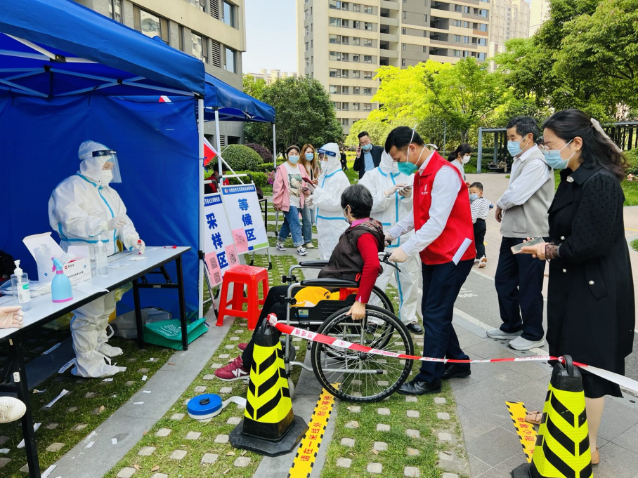 在街道号召下,安徽分公司积极配合抗疫,协助开展全员核酸检测、帮忙量测体温、健康码核实,维护排队秩序。对于老人小孩以及行动不便的业主,工作人员耐心指导操作,确保社区每一位家人完成核酸检测。