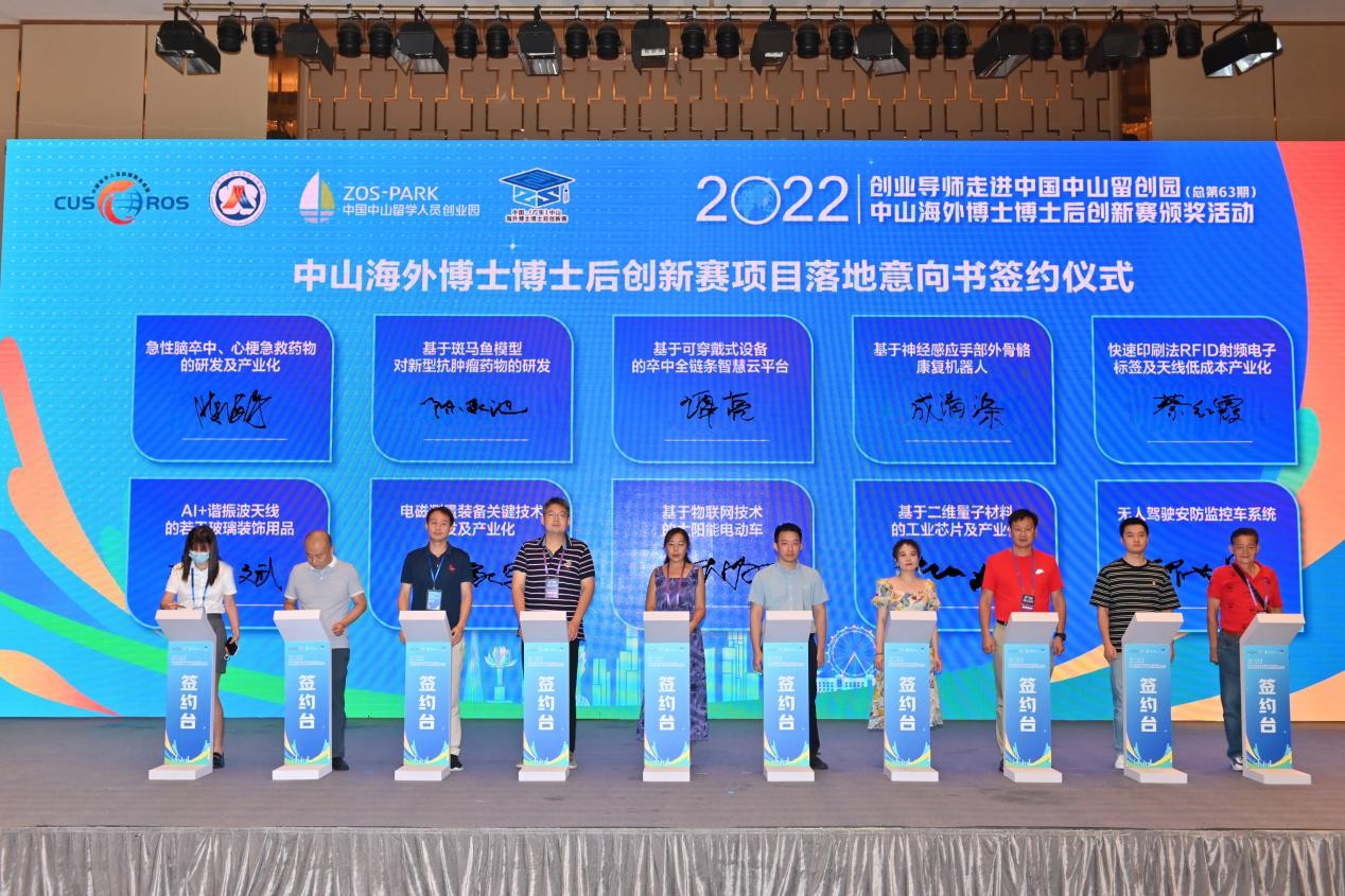 颁奖活动上进行了大赛项目意向落地签约仪式。“急性脑卒中、心梗急救药物的研发及产业化”、“基于可穿戴式设备的卒中全链条智慧云平台”,“基于物联网技术的太阳能电动车”、“基于二维量子材料的工业芯片及产业化”等10个项目签订了落地意向书,后续将进一步落实科技创新成果在中山的转化落地。