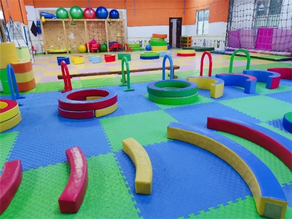 全国最大的运动感统训练课室,引进国内先进流行的感觉统合和粗大精细动作训练设备,设有跑道、滑板、球绳类、悬吊、翻滚爬跳、攀爬等多个丰富多彩的训练项目。
