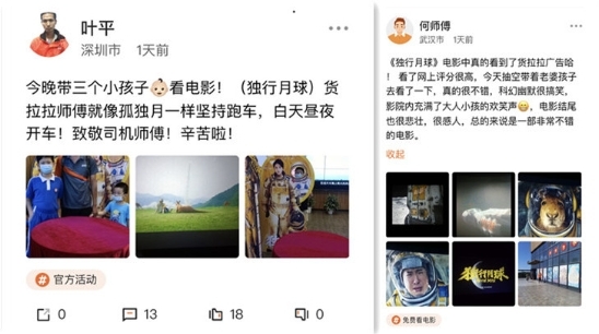 近日,货拉拉启动了“酷暑关怀计划-请优秀司机免费观看《独行月球》”活动,并在司机社区上向全量司机发起了“晒看电影,领取文化衫”活动。