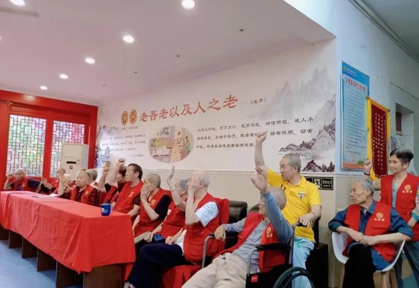 讲座结束后,一行领导和养老院的长者们进行合影留念。
