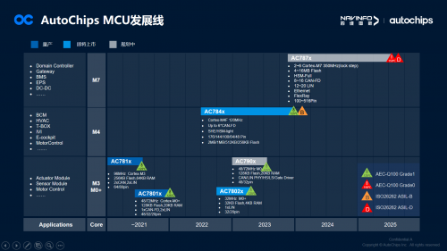 马伟华还在现场分享了AutoChips首颗满足功能安全要求的MCU AC7840x,AC7840x系列是AutoChips首款基于ARM Cortex-M4F内核的车规级MCU,符合ISO 26262功能安全ASIL-B,支持AUTOSAR 4.4,提供MCAL及配置工具,并且拥有更大的Flash与更多的引脚。AC7840x的应用将更加广泛,尤其突破了对安全性、可靠性要求更高的底盘域和动力域应用。目前,AC7840x已经陆续送样,其中有客户已进入产品验证阶段。