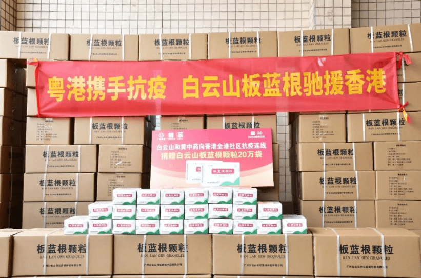 为应对香港第五波疫情,白云山和黄中药火速安排捐赠事宜,加班加点“抢”时间,生产白云山板蓝根,以支持香港抗疫。白云山和黄中药相关负责人表示,专车装载的20万袋白云山板蓝根颗粒等药品和防控物资将在抵港后迅速送往防疫前线。