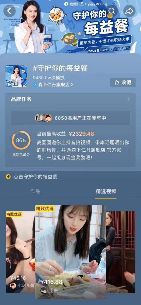 自7月21日全民任务挑战赛#守护你的每益餐#活动上线后,晒出职场餐就可以瓜分现金奖励,上不封顶。各路上班族纷纷加入晒餐,活动火爆出圈!全网上演“美食诱惑”承包味蕾~打卡晒餐的日子过的飞快,不知不觉10天时间就过去了,森下仁丹全民任务挑战赛已经结束!不知道这次活动有没有让各位打工人注意健康饮食,保护肠胃健康呢?