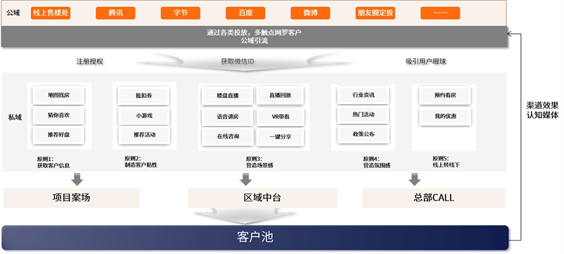 过去,运营人员需要通过各类投放、多触点网罗客户,从公域引流到线上售楼处,比如百度系、腾讯系、字节系等平台,这里通常会存在两个问题: