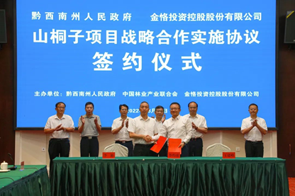 中国林业产业联合会常务副会长封加平对此次签约表示热烈祝贺。他指出,大力发展山桐子产业,有助于解决我国的粮油安全问题。国家储备林政策是发展山桐子产业最好的路径。黔西南州有州委州政府对山桐子产业的高度重视,有生态环境的天然优势,有发展农林产业的丰富经验,有兴民富民的使命感,金恪集团有实力,有团队,有技术,有情怀,双方的合作一定能把黔西南山桐子产业变成全国的样板基地,为贵州省闯出一条实现生态美、产业兴、百姓富的新路。
